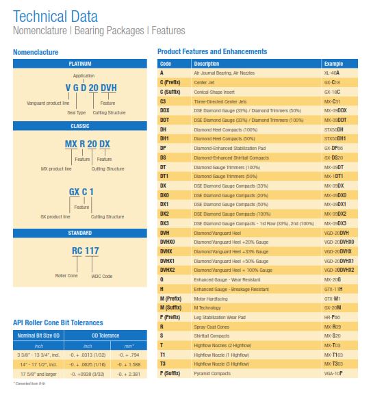 Baker Hughes Drilling Bit Spec Sheets Catalogue