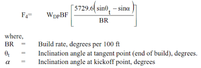 A simpler way of calculating the effective weight of the drill pipe across the build section is by using the following equation,